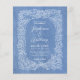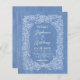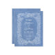 Uma fronteira bonito dá um toque romântico a um tema de cor branca e azul de girassol texturizado. A mão traçada é cheia de flores rosa selvagens, folhas, borboletas, ramos entrelaçados e fitas e duas pequenas aves. Este olhar seria bom para um casamento inspirado na natureza a qualquer momento do ano. Trabalho de arte e design únicos de Tuzi Williams.