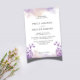 Crie uma primeira impressão mágica para o dia do seu casamento com este convite floral de lavanda elegante. Apresentando delicadas ilustrações de flores roxas e sotaques de aquarela pastel macio, este design moderno, ainda eterno, é perfeito para casamentos românticos de jardim, celebrações de outono ou cerimônias sonhadoras de inverno. 💜 Design Destaques: lavanda de Aquarela e fundo de pêssego Ideal para a botânica, romântica, queda ou casamentos no inverno Personalizar sem esforço para combinar com o estilo de casamento e deixar uma impressão duradoura em seus convidados!