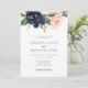 Marinho moderno, azul e pincelado, convites para casamento rosa! Estes convites serão perfeitos para um casamento elegante moderno! Estes convites apresentam marinho pintado de cor d'água e florais de pincel com acentos de ouro.