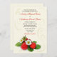 Morango e flores de morango convite para o casamento. Você altera o texto usando as opções de personalização. Ou faça alterações mais abrangentes (fonte, cor da fonte, tamanho da fonte, posicionamento do texto) usando personalizá-la. Este design bonito faria uma boa escolha para um casamento no verão ou no outono ou um casamento com um tema de morango. Morangos fazem um tema de casamento único e divertido.