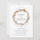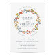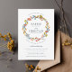 Folha de outono e flor elegantes inspiraram design de convite para casamento de Shelby Allison apresentando uma delicada coroa de folhagem de outono em laranja queimada, amarelo-mostarda, azul-marinho e rosa-rosado.