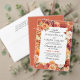 Colocado sobre um fundo laranja ferrugem, este convite apresenta flores pintadas por aquarela nas cores perfeitas do outono, de laranja, pincel, amarelo, vermelho e rosa, com sotaques de folhas douradas. Isto é perfeito para estilos clássicos, contemporâneos e casamentos vintage para a estação do outono. Navegue na seleção de coordenar placas RSVP, sinais e muito mais.
