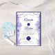 Convide seus entes queridos para seu dia especial com este convite de casamento roxo elegante. A design mostra lindas silhuetas florais lavandas, uma profunda estrutura de fronteira roxa, e uma mistura de caligrafia moderna e tipografia serif clássica. Perfeito para casamentos formais, românticos, jardins ou noturnos. Totalmente personalizável com seus nomes, data e local.