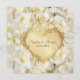 Profusão incrível de rosas brancas cremosas, desenhadas por Convites Formais de Casamento. Este design floral tem um cartaz de ouro elegante na frente do cartão para enquadrar seus nomes e data do casamento. Design está disponível em várias cores. Estes convites de casamento vão adicionar um toque único ao tema do seu casamento. Todo o texto em frente e verso do convite está pronto para você personalizar com suas informações.