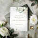 Um convite de casamento suave e elegante com rosas brancas de aquarela e verde delicado — perfeito para celebrações clássicas, inspiradas em jardim ou românticas com um toque refinado.