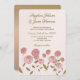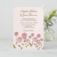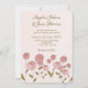 Comemore seu grande dia com este convite de casamento, feito à mão, que apresenta uma fileira de flores de abstrato cor rosa e rosa. O layout minimalista e o roteiro de caligrafia moderno dão a ele uma sensação elegante, mas encantadora, perfeita para casamentos de jardim, comemorações de primavera ou casais de arte. Totalmente personalizável com seus nomes, detalhes de casamento e preferências de cor.