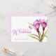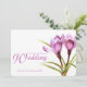 Convite de casamento roxo de Crocus. Púrpura simples, verde e branco floral botânico crocus aquarela pais formais convidando o convite para o casamento. Design e pintura de aquarela original por Sarah Trett.