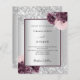 Fundo de aspecto fino prateado decorado com flores, flores, flores e brilho fino prateado, brilhos. Personalize e adicione seus nomes e detalhes do casamento. Letras negras.