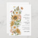 Este convite para casamento moderno apresenta uma impressionante cor d'água rosa pintada à mão e flores poeirentas e azuis e lindos girassóis amarelos arranjados como um buquê maravilhoso que é perfeito para aqueles que amam o feiticeiro/elegância boêmica. Encontre itens correspondentes na Coleção de Casamento de Girassol Moderno.