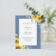 O Cartão postal de convite para casamento elegante apresenta um design tipográfico na moda com um lindo girassol e um design floral de cor d'água eucalipto. Uma sutil cor azul empoeirada é usada para alguns textos e fundo. Esta papelaria de casamento está pronta para você se adaptar com os detalhes do seu dia especial. Parte de uma coleção em crescimento constante, navegue na Coleção de Casamentos Florais Sunflower & Eucalyptus para obter itens correspondentes.