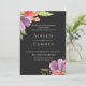 Delicar violeta e cor d'água vermelha arranjos florais sobre fundo preto de ardósia, convite para casamento. Personalizar texto, estilo de fonte, cor e tamanho.