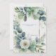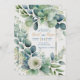 Elegante eucalipto verde, floral branco, e um toque de ouro constituem este belo convite para o casamento. Com Fontes Modernas De Script De Tipografia. Uma Praia Tropical de Verão, Casamento de Destino, Convites de Casamento Personalizados.