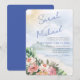 Um belo roteiro de tamanho excessivo em um design floral e de paisagem de praia faz um convite para casamento encantador e moderno que é fácil de atualizar.