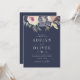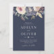 Convide amigos e família para sua cerimônia de casamento com este convite elegante, com flores elegantes de aquarela em um fundo de marinho escuro.