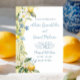Celebre o seu grande dia com este Convite Floral de Casamento La Dolce Vita Lemon, inspirado pela viva vida italiana e perfeito para o tema do limão. Apresentando limões de cor aquosa pintados à mão, flores silvestres e folhas de azeitona em amarelo, verde macio e azul mediterrânico da Toscana, este design captura a alegre elegância da Itália. Personalize facilmente com seus detalhes de eventos. Coordenar com placas RSVP, menus e sinalização correspondentes para um conjunto completo.
