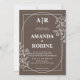 Celebre o seu amor com este convite ousado e moderno de casamento, que inclui um fundo marrom rico, uma arte floral e iniciais proeminentes no topo. Este design contemporâneo é perfeito para casais que buscam uma declaração limpa e na moda para o seu grande dia.