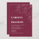 O Convite para Casamento Floral Moderno de Cranberry é moderno, moderno e moderado. Acentos florais brancos à direita adicionam um toque de classe e elegância. Altere a cor de fundo para qualquer cor na ferramenta design.