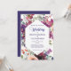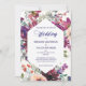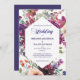 Imagens vibrantes e espinhosas de flor de aquarela fazem uma fronteira colorida neste memorável convite de casamento que é apropriado para casamentos de verão e outono. As cores nas imagens florais incluem violeta roxa, tangerina pálida, laranja, creme e verde macio. Uma sutil camada de confete de ouro é colocada sobre o fundo branco, adicionando um pouco de brilho. No centro está um hexágono branco que contém seu texto personalizado em azul escuro. A parte de trás do convite é azul de correspondência sólida. Esta é uma atualização moderna sobre o convite tradicional para o casamento floral!