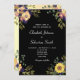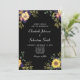 Ouro floral elegante, moderno, rústico, boho moody e convite de casamento preto com flores de cor-de-água, girassóis e verde. Escolha ideal para o inverno ou casamentos outono contemporâneos.
