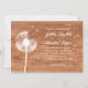 Um dandelion branco e sementes flutuantes sotaque este romântico Convite para Casamento, em um fundo de madeira falsa, fazer-o perfeito para o casamento rústico, country, celeiro, boho ou primavera.