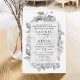 Dramaticamente elegante em tons de preto, branco e cinza, nosso convite de casamento Vintage Floral apresenta um fundo de flores de pénia aquosa em preto e branco chico. Os detalhes do seu casamento são exibidos a preto contra um elemento retangular branco puro. Um design moderno, mas eterno, que é perfeito para os assuntos formais em qualquer estação, esta versão atualizada apresenta uma redação que reflete a hospedagem dos pais da noiva, com o nome também dos pais do noivo.