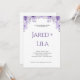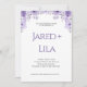 Está procurando um convite para o casamento floral limpo e crocante? Este convite apresenta um quadro floral roxo no topo do convite, mas é definido sobre um fundo branco limpo. Esta é a escolha perfeita para um casamento romântico ou tradicional, ou se o roxo é a sua principal cor de casamento.