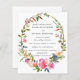 Uma coroa floral rosa moderna tem uma víbora Boho distinta. Há também uma buquê rosa na parte de trás deste convite para o casamento. Este convite para o casamento Boho faz parte da coleção Chic Pink Wildflower. Ele tem os itens necessários para criar um bonito e único pacote de convites para casamento.