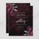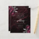 Este elegante convite para o casamento mostra buquês florais entrelaçados lançados com verde folha de prata em dois cantos, em uma imagem de fundo de agate de cor d'água burgundy. O texto personalizável da cinza prateada combina fontes serif, itálico e de escrita manual. O lado inverso apresenta uma borboleta e floral prateado e design agate correspondentes.