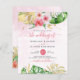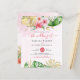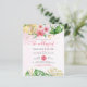 Cor-de-rosa e pêssego tropical orçado com convite floral de casamentos de cor d'água dourada, com um fundo texturizado de lavagem muito rosa claro. Personalize nomes, datas e informações.