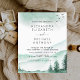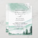 Budget Rustic Mountain Moody Green Forest Watercolor Convites sobre fundo branco - inclui uma bela e elegante tipografia com árvores e montanhas botânicas modernas, bagas e verde para a celebração especial do dia do casamento.