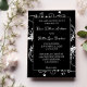 Convide convidados para o seu próximo casamento com um Convite de Casamento Flourado Negro. O design de convite apresenta uma folha elegante floresce com fundo colorido correspondente. Personalize com os nomes do noivo e da noiva junto com a data do casamento e a localização. Material adicional disponível com esta design também.