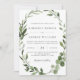 Convide seu convidado com nosso convite de casamento elegante e moderno de folhagem verde... com a cor d'água eucalipto garland. Personalize com seus detalhes de casamento em layout simples e fonte elegante de estilo manuscrito.