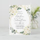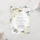 Convite Geométrico Elegante para Casamento com rosas brancas e folhagem de ouro verde em estilo aquarela. Na parte superior da placa - configuração do efeito do ouro esverdeado (esta imagem pode ser removida)