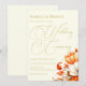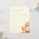 Este sofisticado convite de casamento captura a bela estética "Verona Sunset" de uma forma luxuosa e refinada. O clássico fundo de marfim e o elegante texto de ouro evocam uma sensação de romance eterno, enquanto os vibrantes florais de aquarela em branco e laranja adicionam um toque de talento moderno, artístico. Esta design é perfeita para casais planejando um casamento formal ou clássico com um sentimento caloroso e romântico.