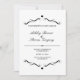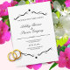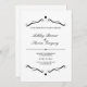 Convites de casamento brancos elegantes com texto de roteiro para noiva e noiva e sotaque decorativo em cima e em baixo