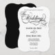 Um convite de casamento elegante para uma forma branca com elementos caligráficos.