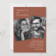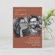 Se está planejando um casamento que é na moda e único, seu convite deve combinar. Nossos convites de casamento minimalistas apresentam um belo fundo boho terracotta, uma foto da noiva e do noivo, e uma elegante modelo de texto moderno com seus detalhes de casamento. No verso está uma foto de impressão de cheio que você pode substituir por sua própria linda foto de casamento.