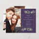 Apresentando delicadas folhas de aquarela em fundo roxo, este convite de casamento de orçamento botânico pode ser personalizado com suas fotos especiais e detalhes especiais do dia do casamento. Projetado por Thisnotme©