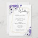 Quadro geométrico Dourado com Convite à Festa de casamento Floral Roxo Periwinkle. O tipo e o tamanho da fonte podem ser alterados no menu de edição. Você pode alterar a cor do título do convite. Os elementos design podem ser alterados através do menu editar e você pode alterar a cor de fundo tanto na parte frontal quanto na parte traseira do convite. As cores baseiam-se na cor do ano de 2022.