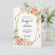 Apresentando nosso maravilhoso convite de casamento geométrico, perfeito para casais modernos que querem adicionar um toque de elegância e romance ao seu dia especial. Este convite apresenta um belo fundo cor-de-rosa com um centro branco, criando uma atmosfera suave e convidativa. O centro é rodeado por dois requintados hexágonos de ouro, acrescentando um toque moderno e sofisticado a esse convite. Os hexágonos de ouro são adornados com delicadas e românticas flores cor-de-rosa e verde, criando um equilíbrio perfeito de elegância e modernidade. O intrincado design floral é perfeito para casais que procuram um convite de casamento único e memorável. Os detalhes florais adicionam um toque de romance e feminilidade a este design, de outra forma contemporâneo. Este convite é perfeito para casais que procuram um convite de casamento geométrico que seja simultaneamente moderno e romântico. Os hexágonos criam um design único e moderno, perfeito para casais que querem algo diferente dos convites tradicionais de casamento. A combinação de rosa, branco e ouro adiciona um toque de glamour ao convite, fazer perfeito para casais que querem adicionar um pouco de brilho ao dia do seu casamento. No geral, este convite de casamento é uma escolha perfeita para casais que querem um toque de romance e elegância no seu dia especial. É também uma excelente opção para aqueles que procuram convites para casamentos florais e geométricos com um toque de ouro. Com seus delicados detalhes florais, design geométrica moderna e uma combinação de cores impressionante, este convite certamente impressiona seus convidados e define o tom para seu dia especial. Peça seus convites para o casamento agora e deixe-nos ajudá-lo a criar uma experiência memorável e bonita de casamento.