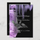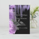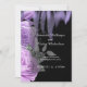 Convite para Casamento Gótico de Rosas Flame Roxo com mapa de instruções e informações de registro no verso. ©Tabz Jones todos os direitos reservados.