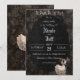Um convite de casamento escuro que apresenta o quadro negro e fontes de gótico para o seu casamento único. Você pode personalizar o convite com suas próprias informações.