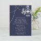 Um lindo candelabro de cristal com mudanças decorativas de corrente, sobre um fundo azul escuro, define o tom deste convite e evento de casamento. Uma vista diferente do mesmo candelabro elegante também decora o fundo deste convite de casamento. O presente convite é apresentado no documento de base; no entanto, sugiro o peso e a textura do papel de linho. Isso faz parte de uma coleção de casamento de cheios, e está disponível em várias cores diferentes. no entanto, se forem necessárias peças adicionais, informe-nos em prettyfancyinvites@gmail.com.