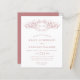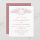 BUDGET Vintage crista heráldica com as iniciais convite para casamento. Apresenta uma estrutura floral cor-de-rosa rosa poeirenta e branca com o monograma numa crista heráldica e flores, folhas e romãs.