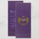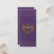 Roxo imperial profundo com monograma num antigo escudo rústico de ouro, acentuado com símbolos de leão. Dourada corda encapuzada e fonte moderna estilada em lilás.