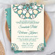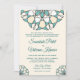 Incêndio aos seus convidados com este convite tradicional de casamento que inclui uma bela arte de mandala em teal contra um fundo bege. Basta adicionar os detalhes do seu evento neste modelo fácil de usar para torná-lo um convite de tipo único. Sacudir a placa para revelar um padrão elegante de mandala no verso da placa.