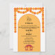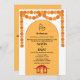 O Convite Moderno para o Casamento Indiano apresenta decoração elegante de flores, Ganesha, doli, arca e fundo laranja. Um design perfeito para o casamento índio moderno e tradicional.Clique no botão personalizar para personalizá-lo com seu texto ou nome.Visite gentilmente minha loja " amor" para outros designs ou similares.