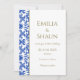 Inspirada pelos padrões italianos tradicionais, este design azul e branco foi originalmente desenhado à mão e é, portanto, exclusivo da nossa loja. Isto permite-vos efetivamente marca o vosso casamento de uma forma na moda e elegante, a partir da estética tradicional mediterrânica. Quer o seu casamento seja em Itália, Grécia, áreas circundantes, ou você queira simplesmente infundir esta essência na sua celebração, os nossos Convidados de Casamento Azul Italiano ao estilo siciliano permitem-lhe fazer exatamente isso. Eles são totalmente personalizáveis, permitindo que você se personalize para se adequar aos seus desejos. Para começar, basta clicar em 'Personalizar este modelo'. Se você está procurando por uma decoração de casamento e papel de carta dentro deste tema, explore nossa coleção de cheios - uma maneira fácil e agradável de preparar todos os detalhes adoráveis para seu dia especial.