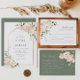 Boho White Rose Floral Sage Green Botanical Arch Elegante Convite Para Casamento. Buquê de rosa branca boêmica com convite à arco de ouro falso com florais elegantes e brancos e botânicos verdes em aquarela impressa à mão. A cor verde de fundo sage é linda para casamentos modernos de boho e casamentos florais. Convites simples e imprimíveis para primavera, verão, outono (outono) e casamentos no inverno.