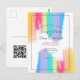 Belo convite para casamento do arco-íris com bonito e artístico traçado cheio de cor brilhante. Estes cartões postais coloridos são perfeitos para um casal artístico ou um casamento de gay e lésbicas. O design alegre é perfeito para uma cerimônia de verão. Adicione seu link de site de código QR à parte traseira para RSVP e registro.